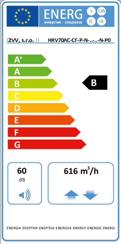 • třída filtrace u AC ventilátorů M5 (přívod) + G4 (odvod); u EC ventilátorů F7 (přívod) + G4 (odvod)
