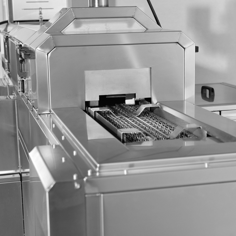 Tunelová myčka FORCHEM TM 600-2B s pásovým dopravníkem je vysoce výkonné řešení pro sériové čištění kovových a plastových dílů. Díly se po dopravníku automaticky přesouvají od vstupu k výstupu a procházejí zónami: předmytí, mytí, oplach a pasivace. Na závěr jsou důkladně vysušeny stlačeným horkým vzduchem.